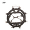 Crampons are specialized footwear attachments designed to provide extra traction and stability on icy, snowy, or rugged terrains. Typically used in mountaineering, hiking, or ice climbing, crampons feature sharp, pointed metal spikes that dig into ice or snow, helping to prevent slipping and ensure safer movement on challenging surfaces. They can be easily strapped to boots and come in various designs for different activities and conditions.